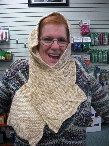 finished my epiphany gift for carla-k, a peaks island hood by isolda teague. i will never make it again, it is a terribly written pattern (work in pat.? which pat?), but i conquered it none the less.