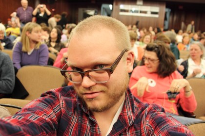 (note the stark difference between the “posed hipster olympics face” and the “totally geeked out to meet stephanie pearl-mcphee and she’s holding my socks face”)
