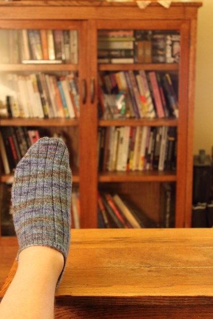 23. 1 pair of hand-knit socks knit with silkie socks that rock, hand dyed by me.