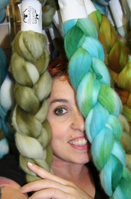 Spunky Eclectic began many years ago about the time when my pottery business was taking a turn and I decided to let it take that turn without me. I was a knitter since I was a tot and that eventually led into all the fiber pursuits including spinning. Once upon a time there were very few hand dyers out there. And almost no one painted on fiber. I spun and I wanted funky fibers so I made my own. Eventually as people asked me to dye for them….well, it’s all history now.