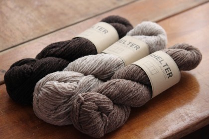d) i do like the fabric this pattern creates with this particular yarn. it’s knit on much smaller needles than one would normally use. i think it works because the yarn is so lofty. and quite frankly, i feel like shelter would knit more accurately to a dk gauge than a worsted anyway, another reason i think this pattern/yarn combo works with such small needles.