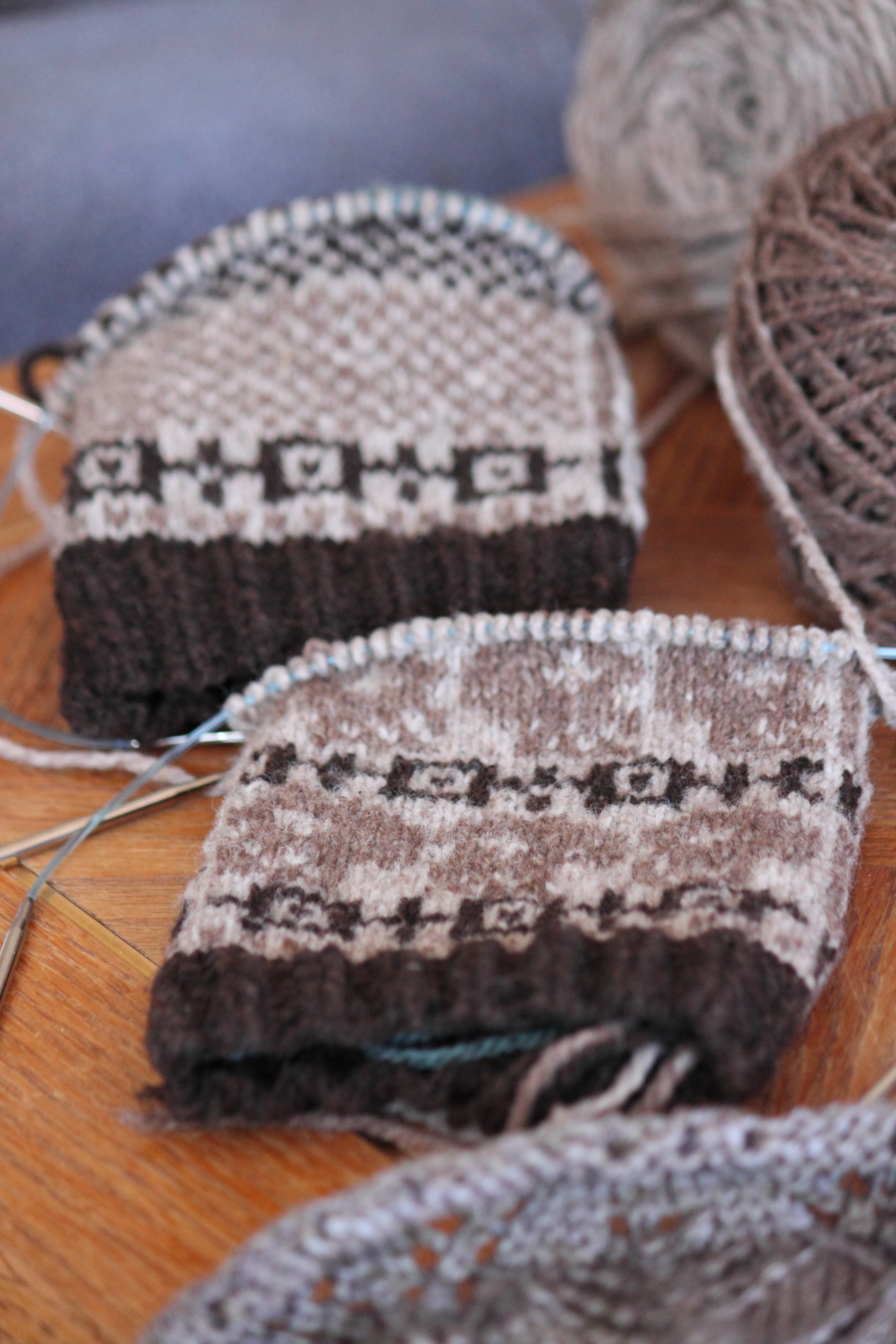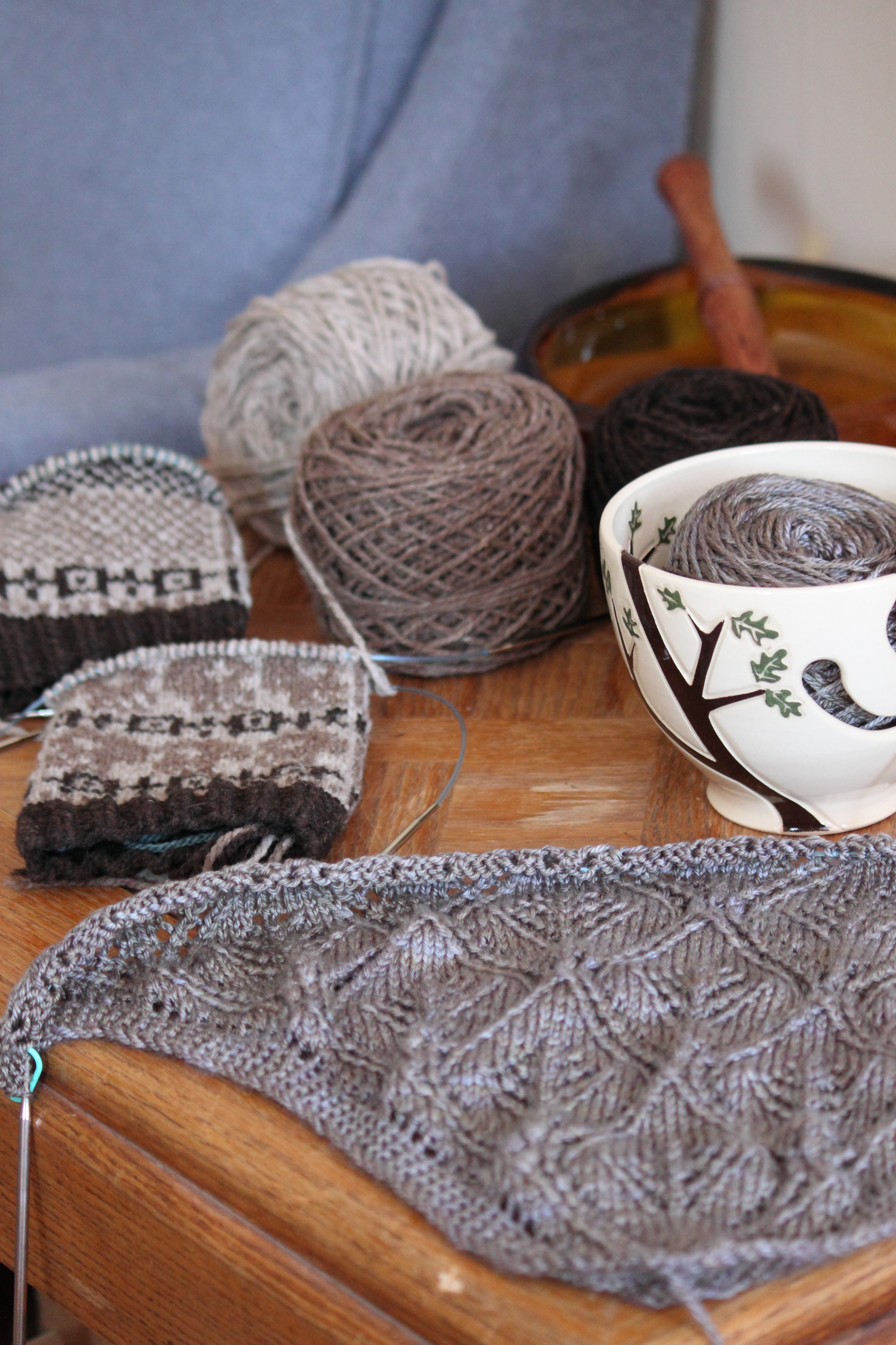 c) it’s also very easy to break which makes me worry about how it will hold up with wear. it didn’t actually break while i was knitting with it. i don’t cut my yarns to switch colors, i just break them. and shelter breaks with very little effort. i’m hoping the fact that the mittens are knit at a very tight gauge will help with the ware factor.