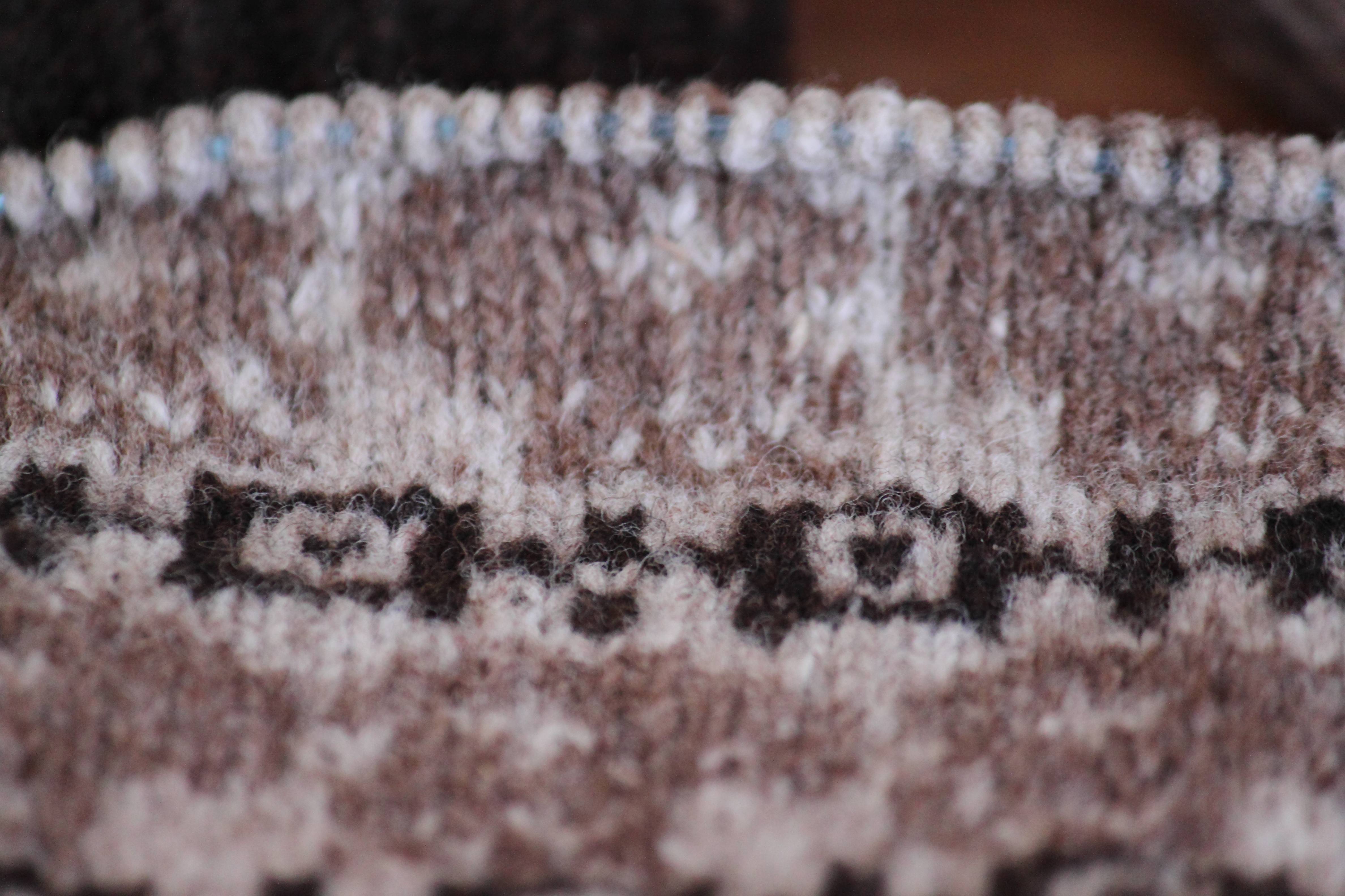 6) the lighter of the contrasting colors could be little more contrasty. however, i did that on purpose. i love the fact that there’s enough contrast to tell that those are skulls without having my mitten scream, “look here! skulls on a mitten!” sometimes my plans work out.